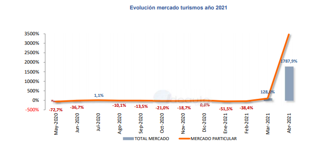 西班牙2020年5月至2021年4月汽车销量走势(图片来源:ANFAC)