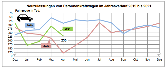 2019至2021年德国各月汽车销量(图片来源:KBA)