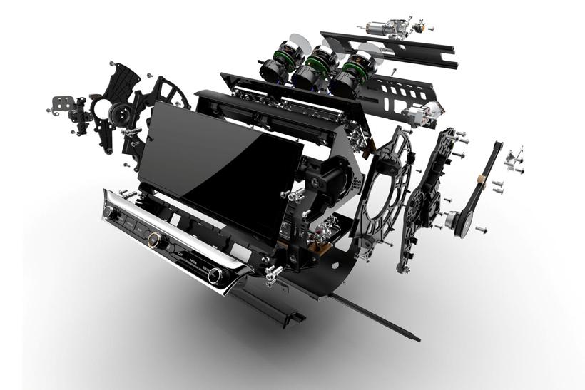 为了进一步了解精度水平,该机制其实由40个移动部件组成,如定制的旋转型线性变速箱驱动单元,与由电控单元(ECU)控制的高精电机配合使用。为了让该系统保持旋转和紧密的间隙,需要三个单独但相互关联的动作,第一个动作会将该装置收回至仪表盘,以便有足够的间隙,让第二阶段的装置可以旋转。