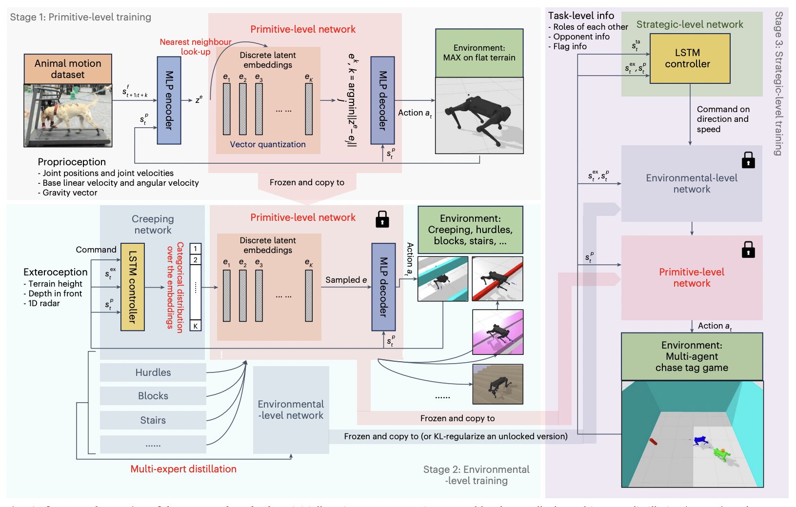 实现敏捷四足运动的替代方法是利用运动传感器和摄像机收集的动物运动镜头作为演示,用于训练控制器(即执行机器人运动的算法)。这种被称为“模仿学习”的方法能够在某些四足机器人中重现类似动物的动作。