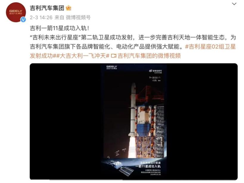 在汽车领域,吉利的卫星布局是最早的,将为汽车智能化创新带来新的突破口。就在前段时间,吉利又成功发射了 11 颗低轨通讯卫星,共计已经有 20 颗,到 2025 年将会扩大到 72 颗,以实现最佳的定位和通讯效果,并且还会应用到辅助驾驶领域。
