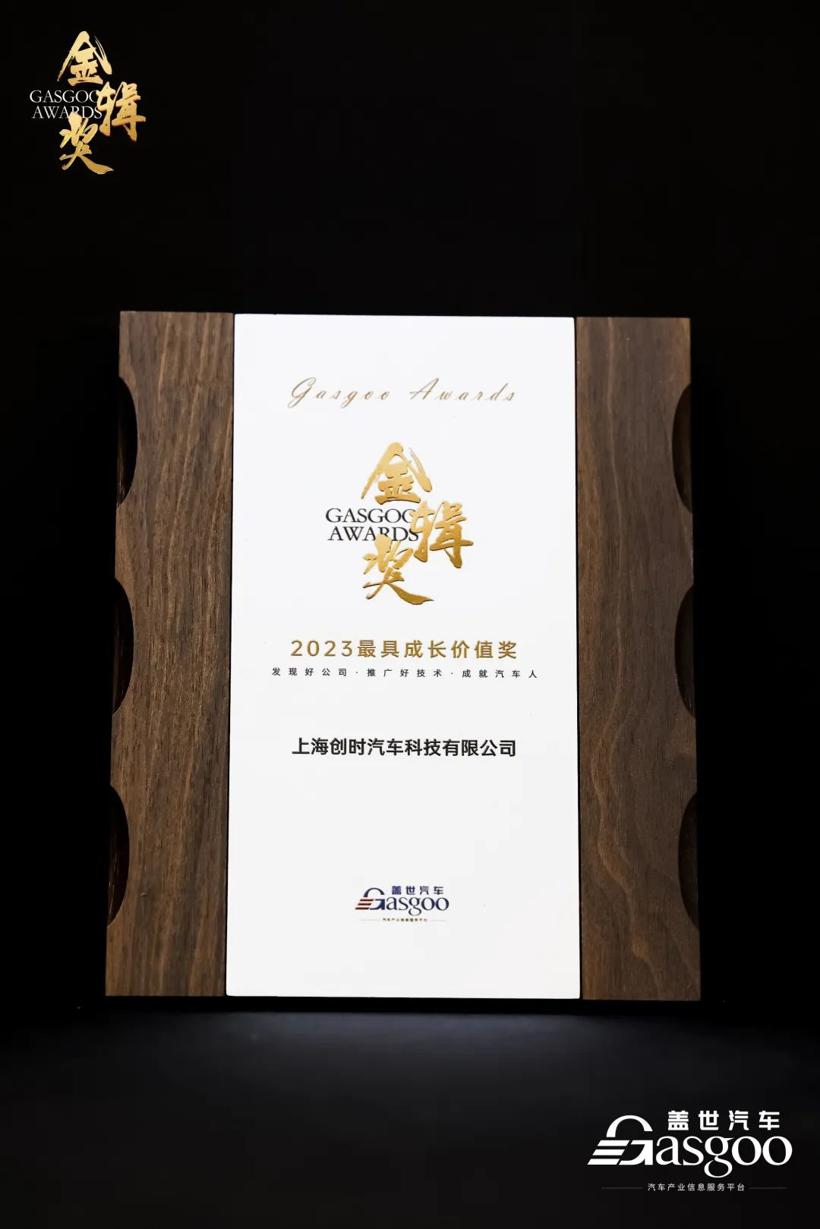 创时荣获2023盖世汽车金辑奖“最具成长价值奖”